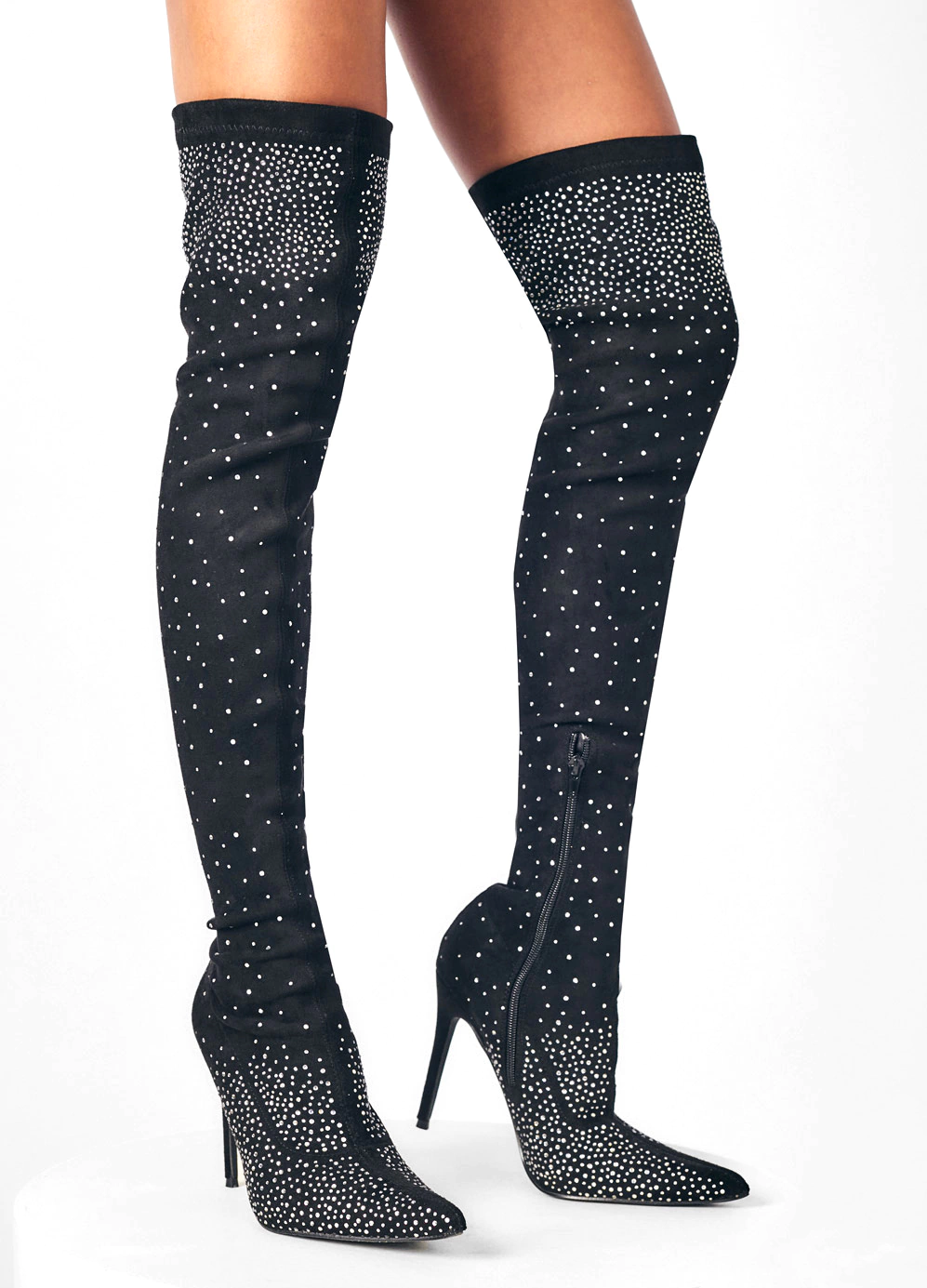 - Bucanera gamuzada color negro, recubierta de strass.