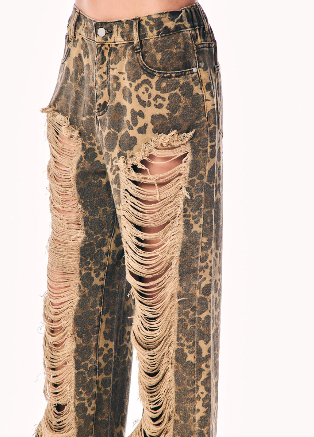 - Jeans de corte ancho y estampado animal print, perfectos para quienes aman destacar con estilo.