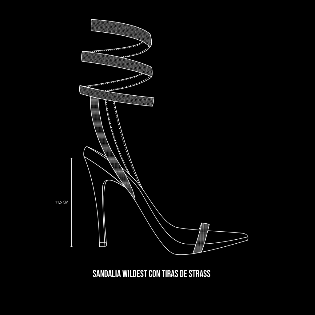 - Cuentan con elegantes correas brillantes estilo resorte que se ajustan alrededor del tobillo para un look sofisticado y seguro.