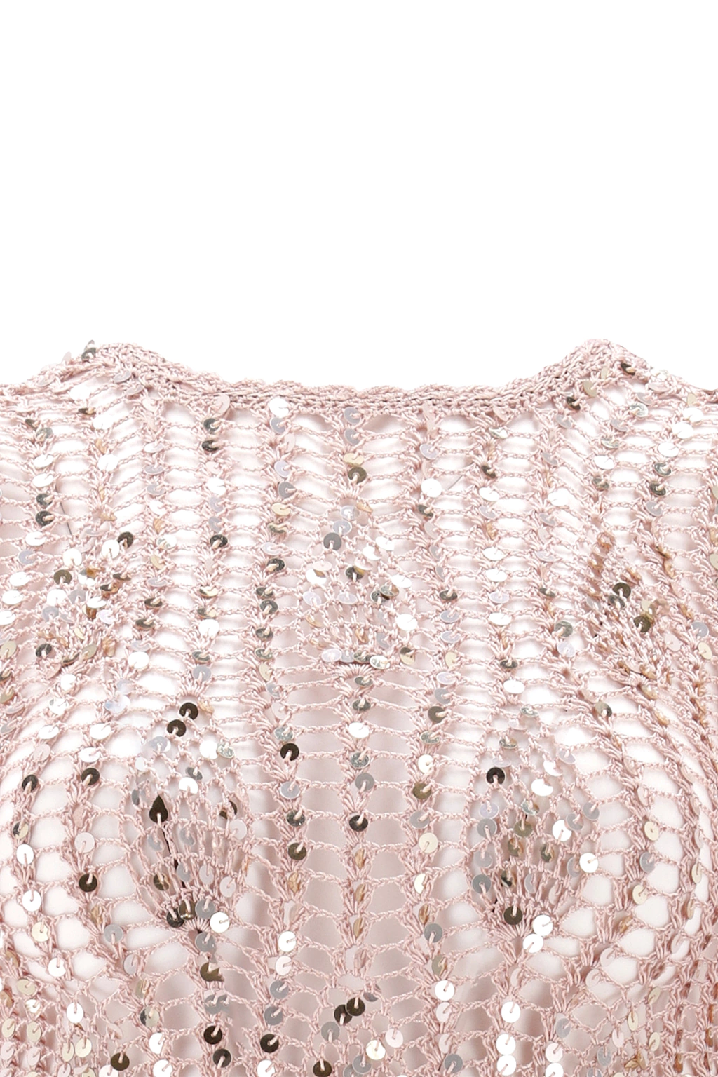 - Confeccionado con delicados bordados a mano, este vestido está adornado en su totalidad con lentejuelas a tono, creando un brillo sutil que deslumbra sin esfuerzo.