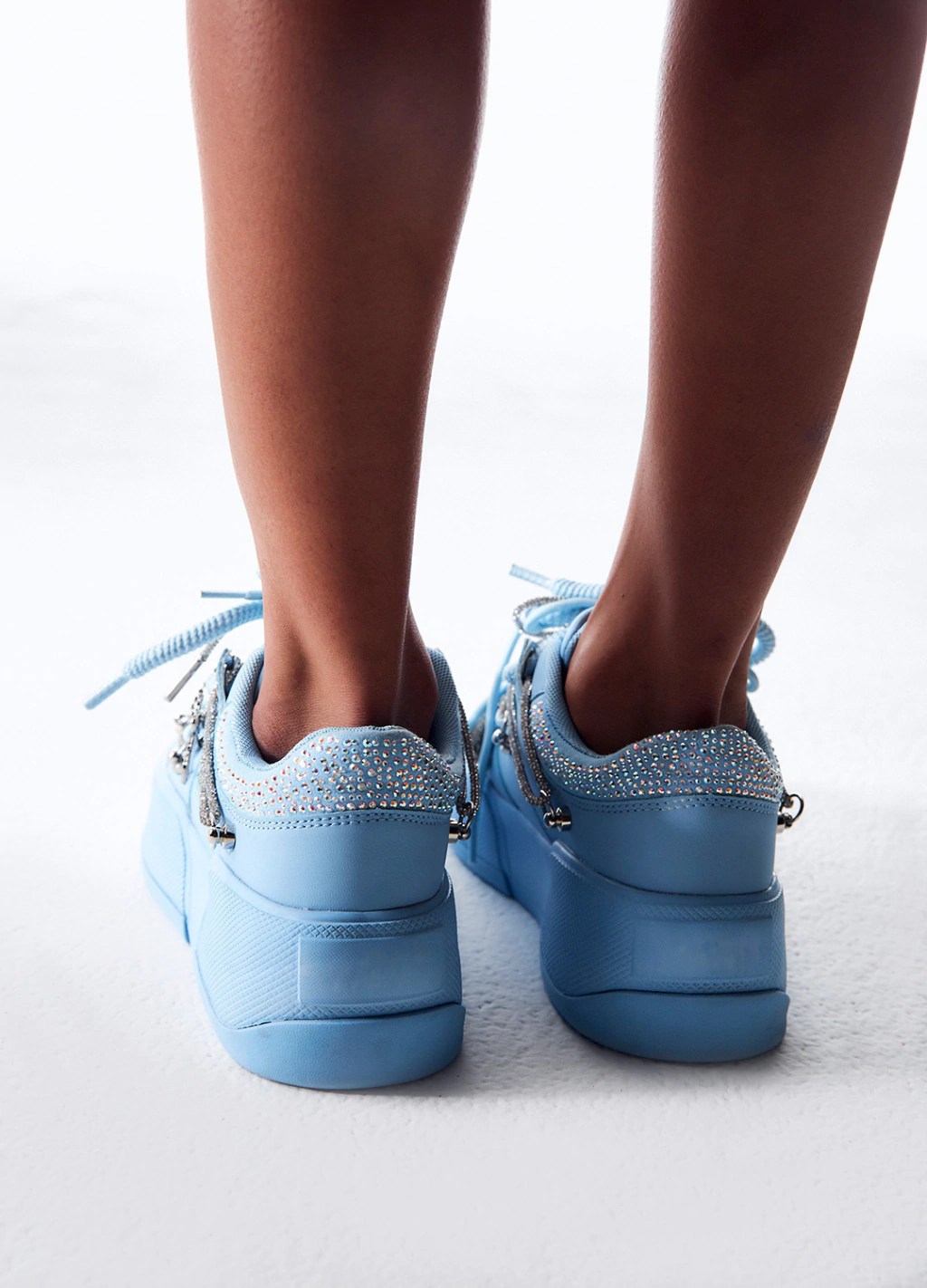 - Detalles de ojales con cordones anchos y finos y una tira delicada de strass.